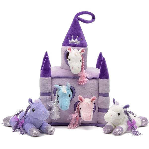 Amazon Com Unipak 12 Pink Plush Horse Castle 5 Stuffed Animal Horses In Pink Castle Carrying Case Toys Games